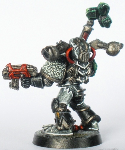 The Chaplain is the least offensive of the marine specialists in that regard as adding some black to a scheme isn’t as disruptive as adding an actual colour to it. Still, when I added a Chaplain to the Sin Eaters I wanted to use the minimum amount of black to make him stand out a bit without ruining the army uniformity. I think that it worked fine. Not brilliant, but not awful in my opinion.