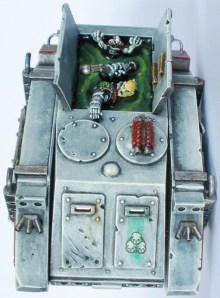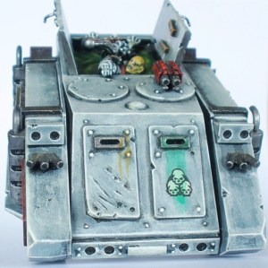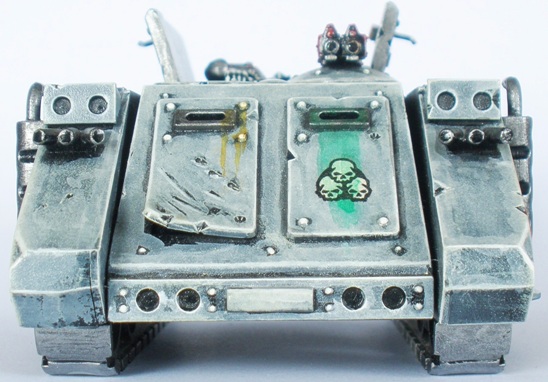 My Sin Eaters ended up with three Rhinos, the first of which is here. This Rhino was usually used to transport a Squad of Plague Marines. This was the second Rhino that I assembled and subsequently become known as the “jacuzzi rhino”.