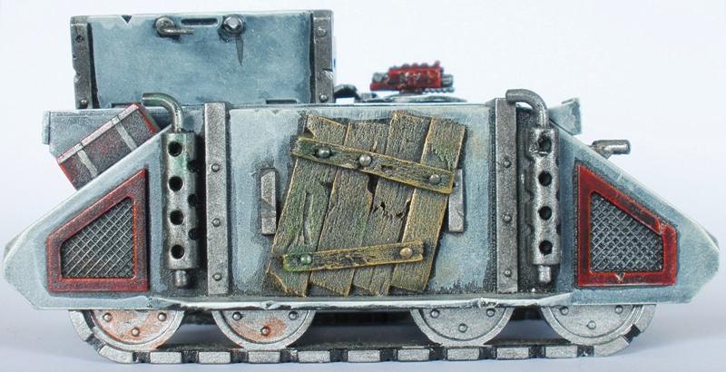 When putting together an army for whatever reason it is important to have a few centrepieces. Personally for armies I think that usually the most important thing is a sense of uniformity in the colour scheme. That can lead potentially too uniform / potentially bland overall look and so it is important to have a few things that draw the eye. While the conversion of this Rhino was not particularly difficult to do it has over the years probably been the one thing that most observers point out in the army.