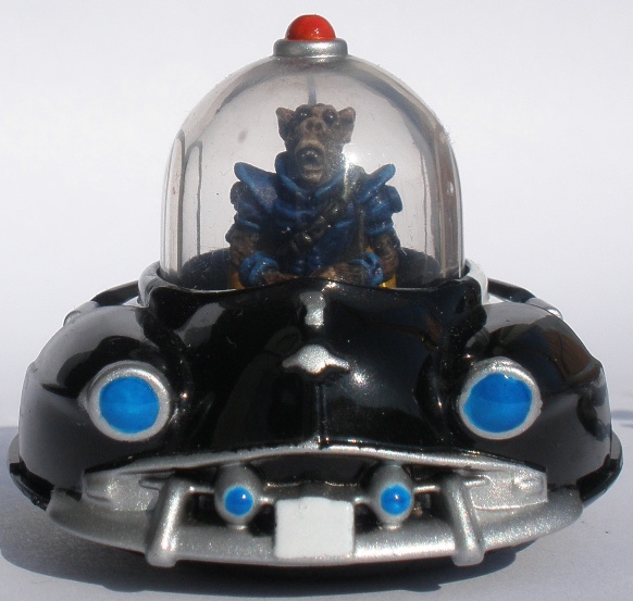 I recently traded for a couple of sets of toy flying saucers from the “Planet 51” movie. The saucers are pretty titchy and the only figures that I had that I thought might be able to squeeze into the cockpit were some space chimps. And so, a project was born.