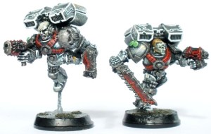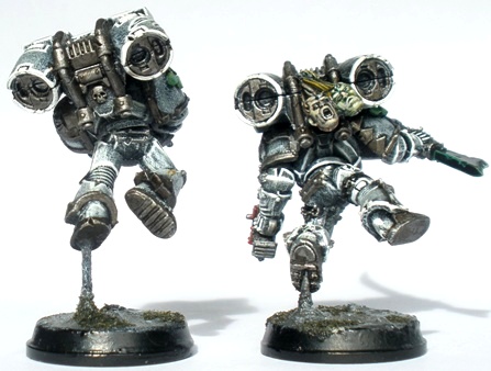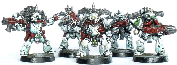 At that late stage of painting an army (roughly about 80 models or so into the project I would say) painting techniques tend to have evolved, usually in the interests of expediency. In addition to that slighly more oddball units and concepts start to crop up, usually in my case in an effort to keep interest up. Hence the heavily armed unit of jet pack-ing zombie space soldiers.
