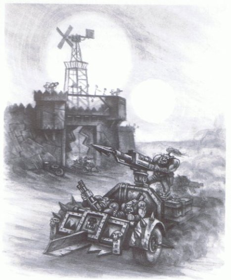 Some of the main influences were Mad Max II: The Road Warrior, the Buster Crabbe Flash Gordon serials and a bit of Masters of the Universe thrown in too. Additionally these images from the GW Gorkamorka rules were in the back of my mind most of the time.