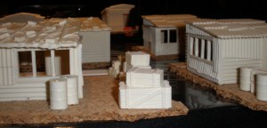 Note the chipped edges on the old shacks shown. They will be either repainted or obscured in some way later on.