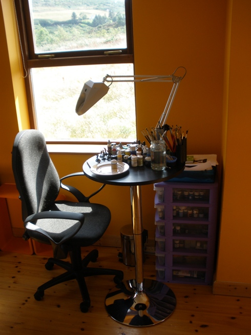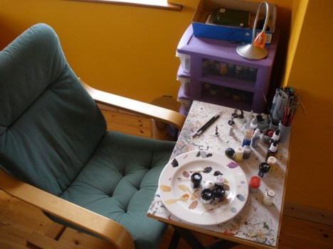 Following on from last weeks post showing photos of my games room I thought that I would put up a couple of photos of my painting area, just for the sake of completeness. Not strictly a workbench I suppose, but whatever.