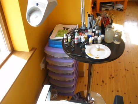 Its a functional space, but not a pretty one. As my painting area is located in the living room we both see it every day whether I am painting or not, so I am currently on the lookout for ways to make it a bit easier on the eyes. I may tackle the issue at the same time that I sort the Man Cave out properly, likely in September with a bit of luck.