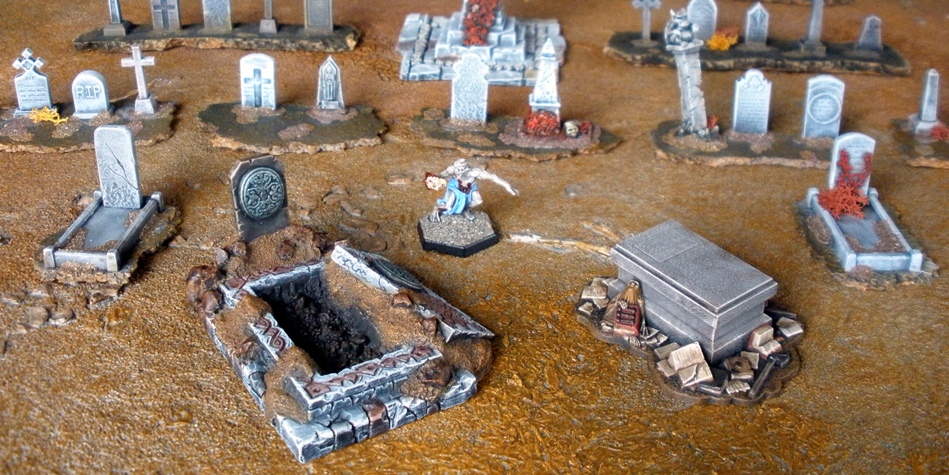 I recently got another couple of items finished for my graveyard, the open grave and the crypt in the foreground of the picture above. The photos are a bit poorer than usual Im afraid, as I dont have a set up decent enough to take photos of anything much bigger than a 28mm figure for the time being.