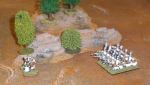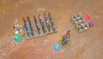 The colour scheme was decided upon for speed of application more than anything else. The chosen uniform colours were applied as a couple of washes over a black through grey to white drybrush. The fleshier tones were layered on in a slightly less down and dirty fashion, but it is very much a “tabletop quality” paint job.