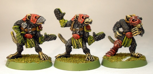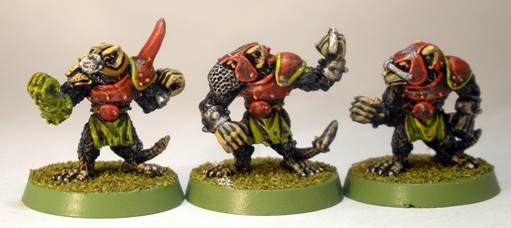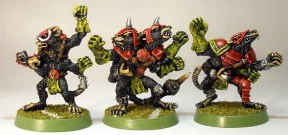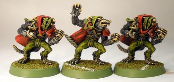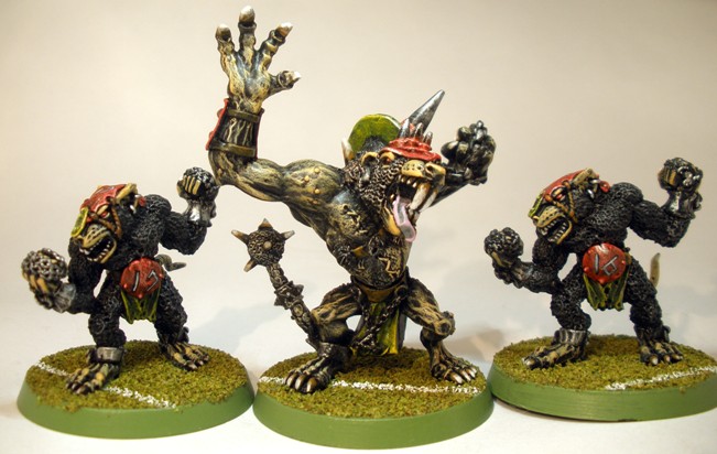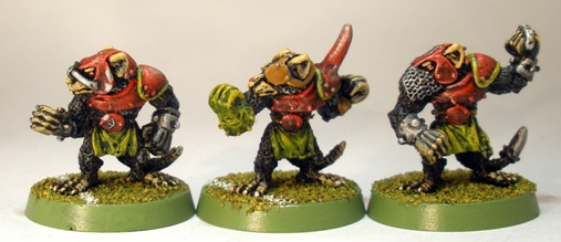 I am not sure at what point it seemed like a good idea to end up with three Blood Bowl rat-ogres, but it happened. Funnily enough I think that the old hairy rat-ogres look a little more like Blood Bowl players than Headsplitter (centre) does.