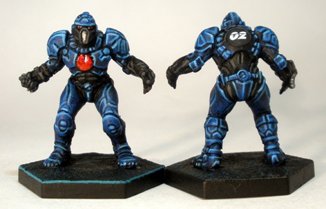 Although not strictly part of the Patriots team, I painted up the two MVP figures above to fit in with them. With a name reminiscent of actors in adult movies, Lucky Logan only plays for human teams. It therefore made sense to paint him in a matching team strip.