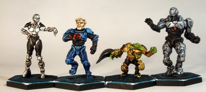 As Joe is only allowed to play for marauder teams, I painted his slightly lighter striker armour to match my BP Oilers. Although it was tempting to paint his ‘tache an oily tying-victims-to-train-tracks black, I figured that it wouldnt stand out very much. I went for a gingery, orange colour instead. Of minor note is that Joes facial hair is prosthetic: the elastic holding it in place is visible on his head.