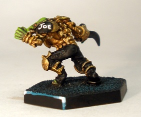 Joe here is a named character available to marauder teams in Dreadball. As goblins dont normally play in the position of Striker, Joe is unique. He also has a huge moustache.
