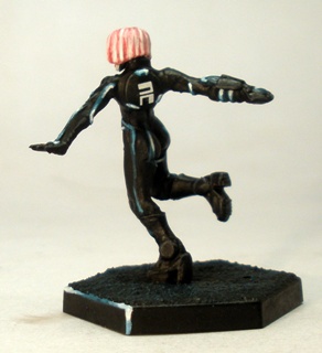 The pose is odd but as I mentioned, I enjoyed painting the extreme highlights on the TRON-esque banding. The pink hair gives a little interest to a limited palette too.