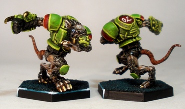 The final team from my first batch of DreadBall figures, a pack of sporty, space rat-men sponsored by Rekall Incorporated.