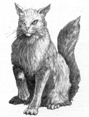 A Gyrinx resembles a large cat, with very thick and fluffy ginger or orange fur and bright blue eyes. They can grow to as much as a metre in length. Gyrinx are not intelligent as such, but they have an astounding ability to empathise with other creatures, forming a mental bond with their owner which is comparable to true friendship. This mental empathy is of great benefit to the creatures owner, whose own speed of thought and action are actually improved whilst the Gyrinx is in close proximity. What benefit the Gyrinx obtains from the relationship is unclear, but there is plainly some deep-seated need being fulfilled, because an ownerless Gyrinx will actively seek out and adopt some other creature. Oddly enough, Gyrinx show a slow metabolic change so that they come to resemble their owner physically, tempermentally and in habit.