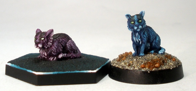 Thanks Argentbadger, the cats were a fun and fast paint job. I took a close look at the markings on my four pet cats before I painted the figures and tried to simplify it a bit, almost as if I were trying to make an easily repeated design for a cat character in a cel animated movie, if you know what I mean. A visual shorthand.
