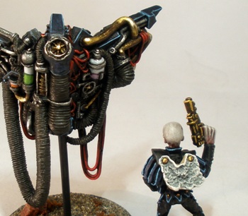 This description gives lots of leeway as to how Heirs Apparent might appear. From bloated and heavily deformed, to very elderly and artificially sustained, to hardwired to the peculiar instruments that navigators use to ply their trade etc. The Totenkranz model covers many of those bases rather well. That the figure is also suggestive of Baron Harkonnen from Dune – itself a series that 40k draws heavily from – is a bonus 🙂