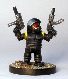 The twin SMG wielding guy above suggests some sort of badass to me, possibly the sort of faceless, covert-ops specialist who never speaks, like Snake -Eyes. I was tempted to add a sheathed katana to his back before I painted the model but didnt. I mildly regret not doing it now.
