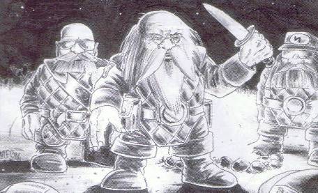 He does look like an aged Sutherland. I like when that urban camo motif is quite visible on your Space Dwarves. I find it lifts (adds more depth to?) the rather dark uniform of the UM’s.