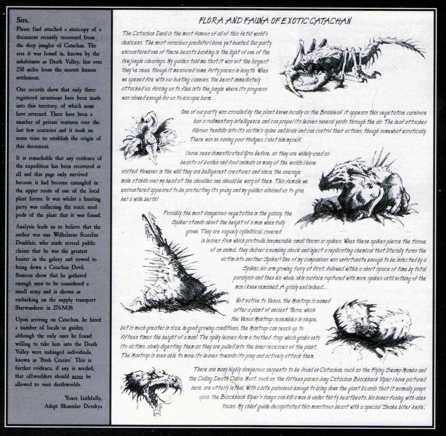 The idea of a collection of Death World terrain has always been in the back of my head also. They are a good thing that the GM can use to make a game exciting or for “player control” when you need to push them down a certain path for the sake of the narrative. I want to have a go at many of the guys on that list myself. The Venus Man trap is particularly appealing.