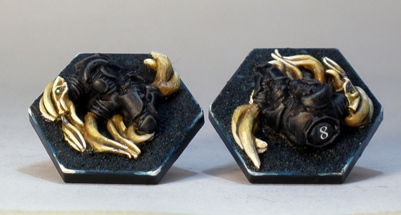 They look pretty good to me. I approve of this very striking colour scheme. It fits in nicely with the board’s colours. Those figures have some issues in terms of game ergonomics but have a lot of charm in a general miniatures appreciation sense. I could totally make some sweet sci-fi alien bounty hunters from them – hopefully Mantic will follow up with some sci-fi versions in future.