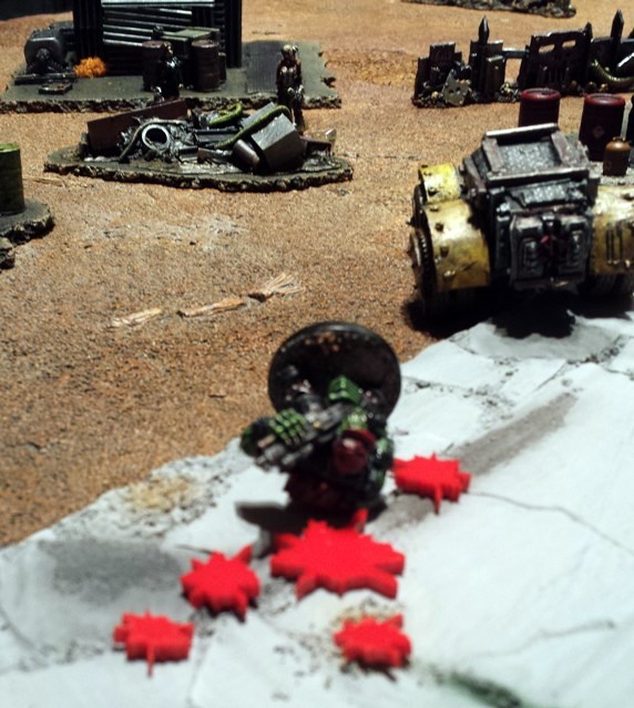 On a personal, hobby sort of note the game included a lot of other satisfying things for me. This was the first game for many of the miniatures used and its always rewarding to see the little painted guys in their initial imaginary firefight. It was only the second game for the MiB figures that I painted on a whim back in 2010 and rebased recently and I thought that they fit in well enough with Inquisitorial types. People in the future will probably wear suits from time to time too after all.