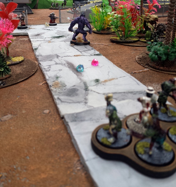 The scenario is a variation of The Lost Keys scenario from the basic Pulp Alley rulebook. We added some zombies that encroach after a couple of turns instead of a turn limit and we added an extra turn that takes place in the cramped confines of the shuttle once it has lifted off.