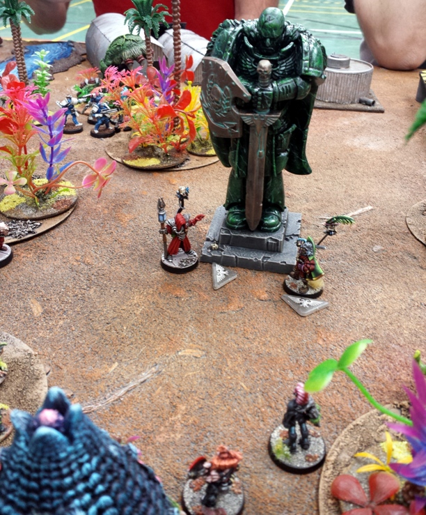 Holy Ground had a particular in-game effect. As the Sensei are all sons and daughters of the Emperor Holy ground was represented with the two Honoured Imperium monument pieces that I painted a little while ago. They were painted specifically for use in this game.