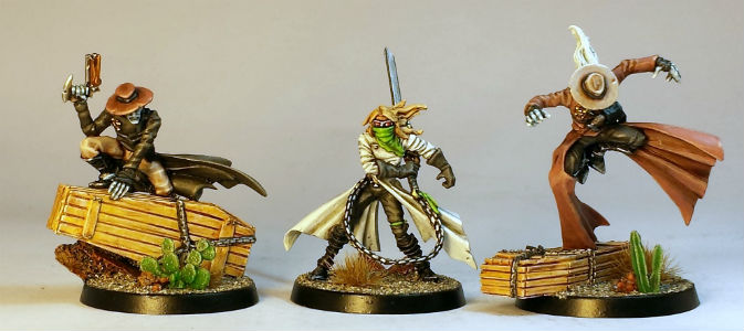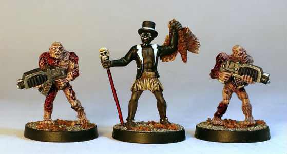 The game to be played at BOYL in a few weeks is a bring and battle affair, with each player supplying their own Sensei and his sidekicks. I brought Ramirez and his entourage as depicted above, plus I had a dig around in my miniatures to see what other models could be supplied to people who wanted to take part in the game at Brocon. Mr Saturday also supplied an extra Sensei and sidekicks from his collection along with his ‘stealer cult Magos and theottovonbismark brought his soon to be unveiled Clancy Boys. I dont have photos of those warbands though.