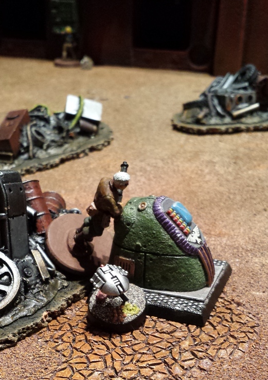 The game ended in a draw and with the Necrons holding the Inquisitor captive. That is how I would have left the game narrative to be picked up next time, only that the Inquisitor and a handful of his cronies have to leave Krellborn IX to make the journey to Sector Six to try to make sense of some of the intrigue going on over there (and the miniatures all had to be sent across the Atlantic to take part in Maj. Guiscards games). Hence the deus ex machina.