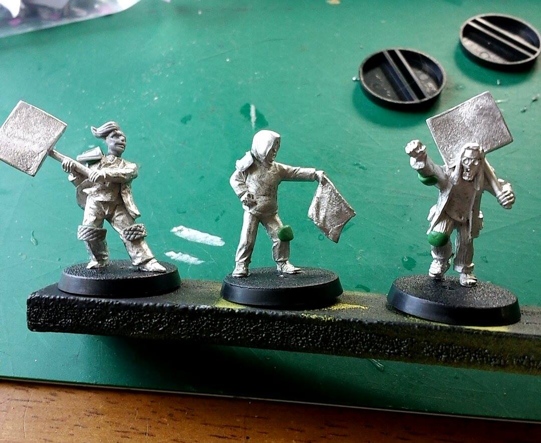 I traded for just the models with the placards Suber as I was looking for protesters rather than rioters. The Offensive figures were decent casts and nicely defined sculpts to paint – the worst elements to work on were the bits that I added really – so I can definitely recommend them.