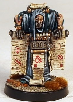 I tracked that model down recently and was very happy to add him to this project. I added the Administratum symbol as seen in Rogue Trader to the shoulder pad (it looks a little less dodgy actual size).