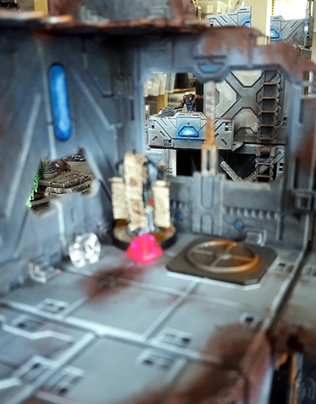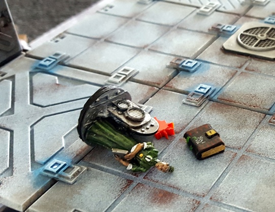 Note: the book in the shot is a “ships log” that I glued together from bits and pieces for Space Hulk gaming back in 1991 or so. I recently found it in a box of game counters so decided to press it into service as a Plot Point in this game for old times sake.