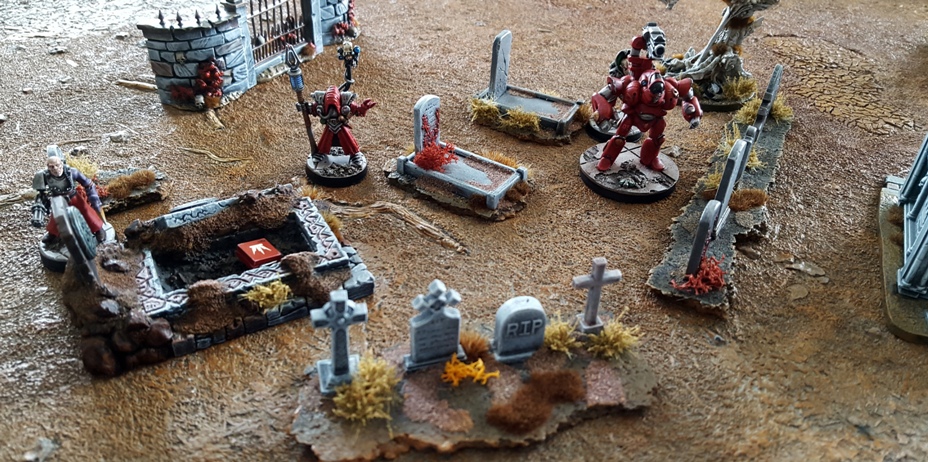 Mr Saturdays genestealer Kabeiroi cultists faced a forbidden technology equipped pair of Leprecian ratlings (led by the almost universally loathed megalomaniac Captain Jameson) across part of the decaying cemetery of St Craniums.