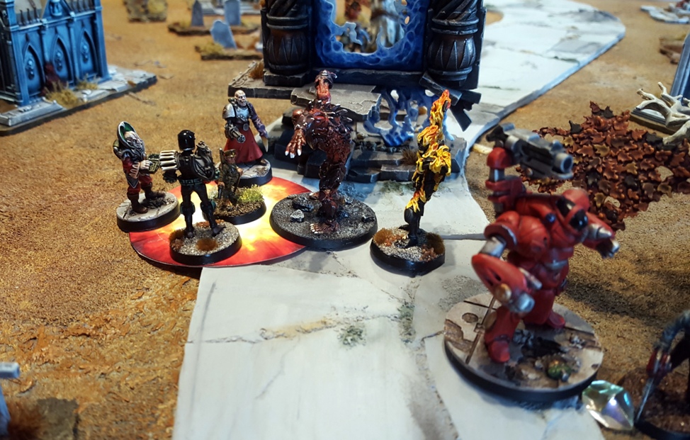 A solidy great, time, the excellent company and Paul’s impressive scenery collection heightened the gaming several levels. The realmgates were bigger than I expected, very desirable models with cracking paintjobs, including some tasty lighting effects.