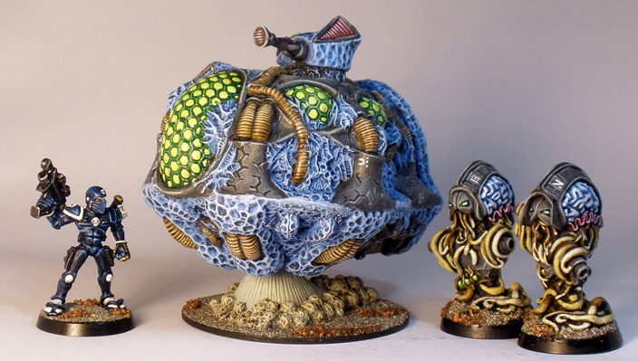 That left me with fifteen alien brain models in the force. For the sorts of games that I play – skirmishes with less than nine models per side – the above force is more than adequate. I do enjoy painting that colour scheme though, so I lined up some more items to add to the force some time ago. This is the first batch of those.