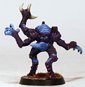 I tend to be drawn to vivid, unearthly colours for my sci fi miniatures, particularly monsters, the electric blue in these guys is a case in point. An offshoot of the Trygon bio-electric pulse biology perhaps?