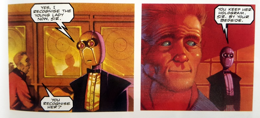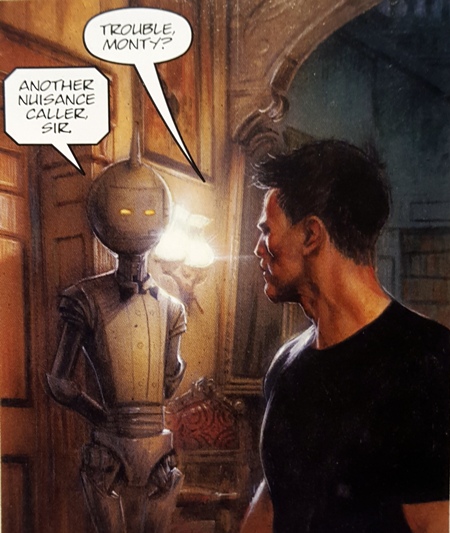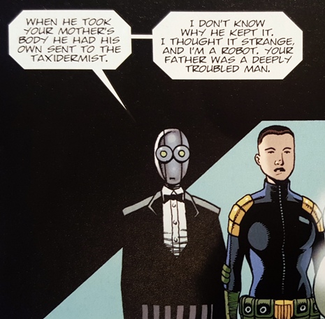When Judge Dredd investigates citizens with a lot of creds to their name, he regularly comes into contact with well dressed servant robots.