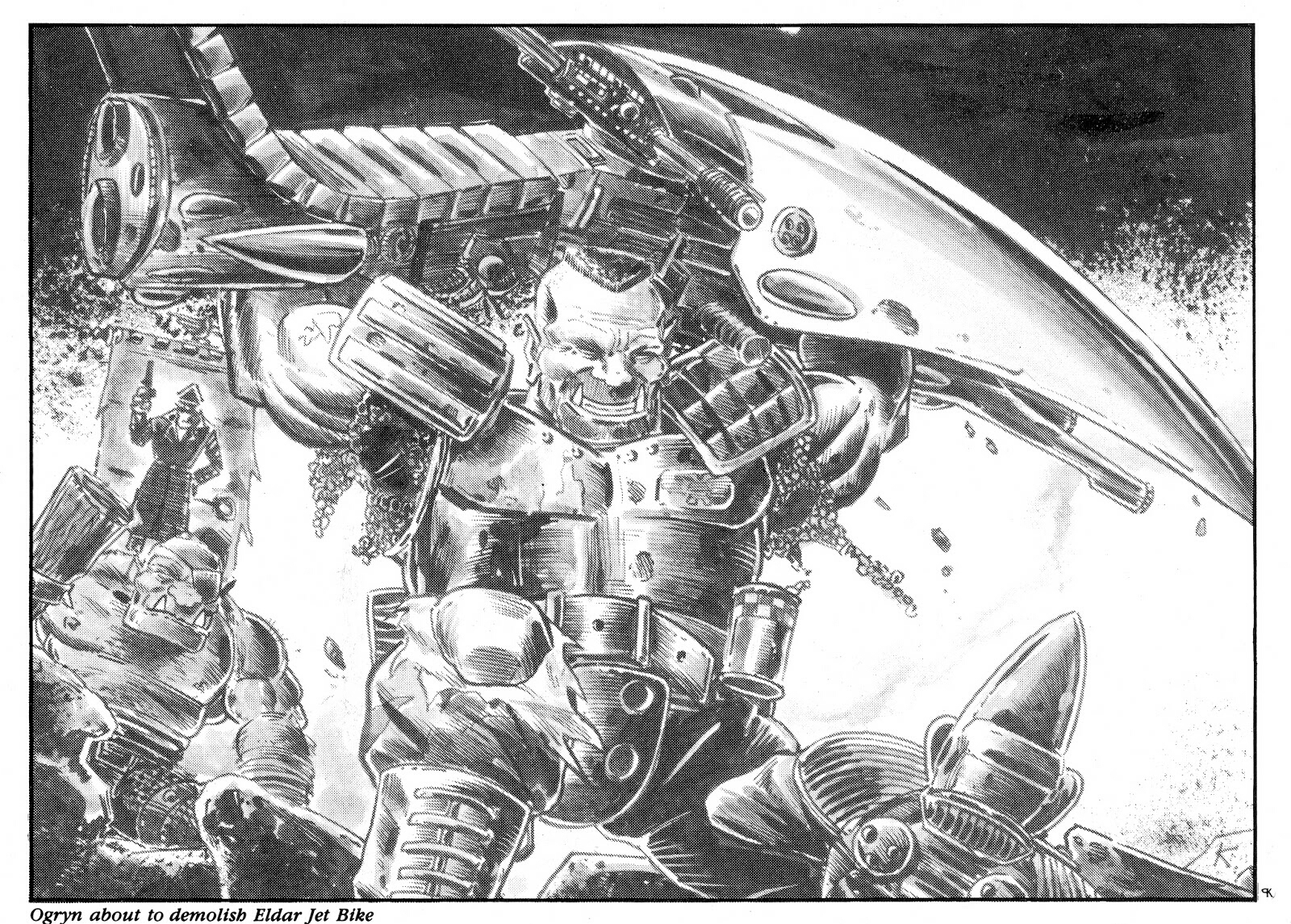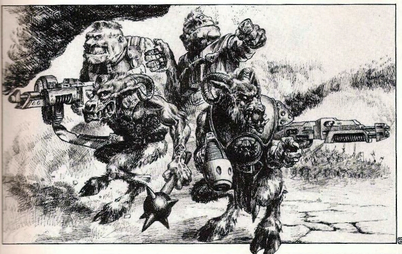 The combination of 20th century military tropes with fantasy species has rarely been as irresistible as it is in the image above. One of my favourite 40k illustrations of all time. It has ogryns in it.
