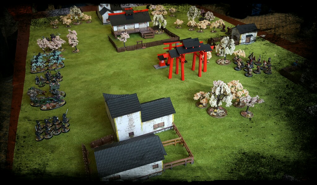 I have bought myself a green mat to go with that terrain set. It looks more appropriate I think. I also have a few more items that I would like to add to it: bamboo groves, a small cemetery, a few road shrines etc.