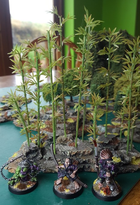 While I decided to anchor my bamboo in sheets of cork tile rather than the gorilla glue technique used there, I did get a lot of inspiration from that post, so its well worth a look if you are interested in putting some 28mm bamboo forestry together.