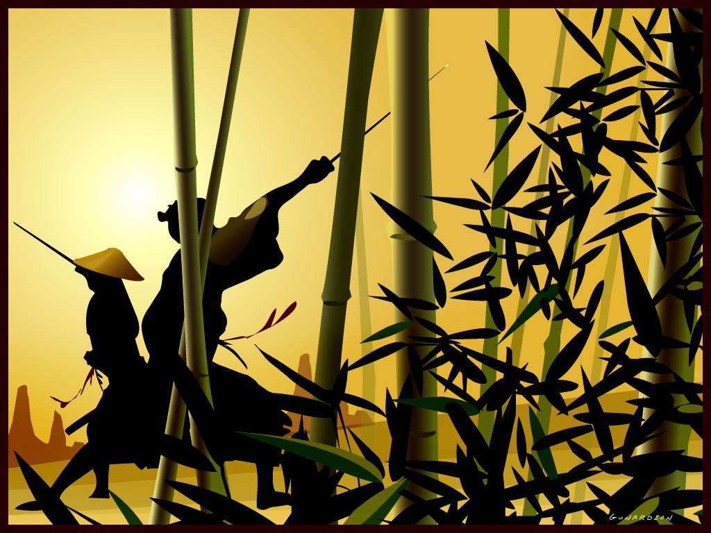 Of course, not only is bamboo suggestive of the Far East, it is also part of the visual character of a lot of martial arts and samurai culture and media, whether its chopping the stuff up…