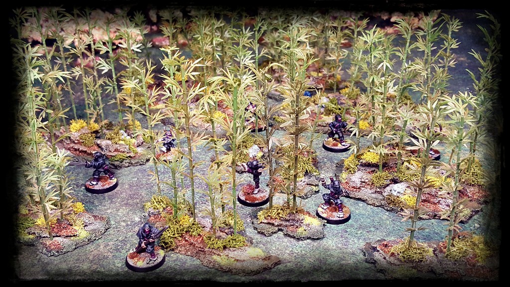 While I decided to anchor my bamboo in sheets of cork tile rather than the gorilla glue technique used there, I did get a lot of inspiration from that post, so its well worth a look if you are interested in putting some 28mm bamboo forestry together.