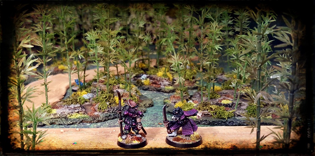 Excellent work. The bamboo looks convincing and the drybrush really adds to it. The scenic shots are overall beautiful and very evocative. The first one reminds me a bit of a theatre stage or kabuki theater.