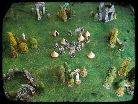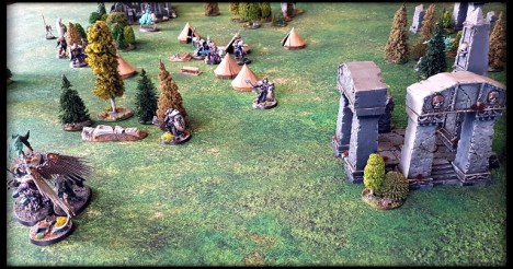 That was the “Assassination” scenario. The g-g-g-ghosts ambushed the Stormcast during chow, hoping to cut the head from the Stormcast snake. Paulo Ringseeker could not abandon the camp (as delineated by the tents).