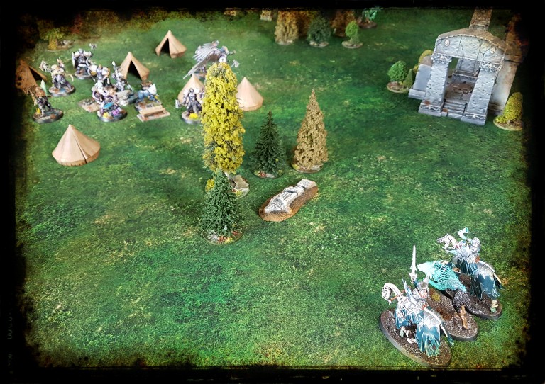 That was the “Assassination” scenario. The g-g-g-ghosts ambushed the Stormcast during chow, hoping to cut the head from the Stormcast snake. Paulo Ringseeker could not abandon the camp (as delineated by the tents).