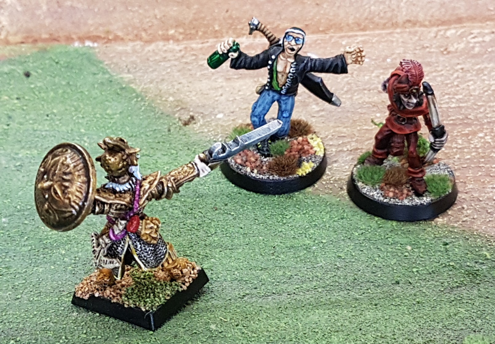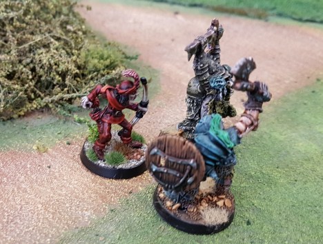 Whiskeypriest organised an Eternal Champion game inspired by Michael Moorcock’s books to take place at Bring Out Your Lead at Foundry near Nottingham earlier this year. Players had to supply an Eternal Champion and a sidekick, so I picked Rackhir the Red Archer and a boozy model that I use to represent me in games from time to time.