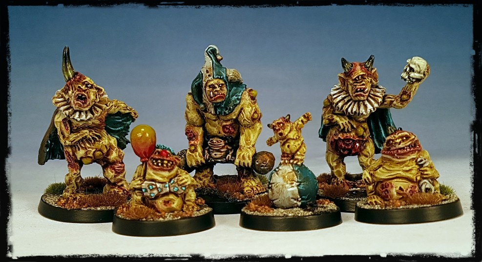 I was sent a few preview miniatures from the Circus of Corruption Kickstarter that is currently running. The bizarre looking collection of figures looked like a group that I would enjoy painting fairly rapidly, so that’s what I did.