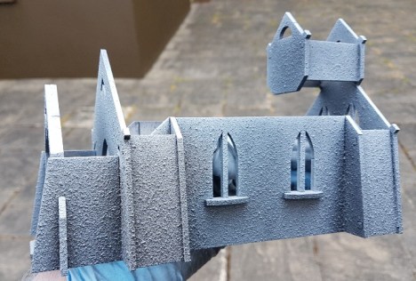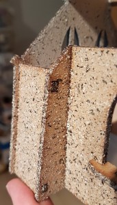 Originally the church was going to be used in a sci-fi setting so the clean MDF sides were a positive, but with the church to be planted in a fantasy setting after all, I decided to try a textured spray paint to give the walls a little visual “grain”.