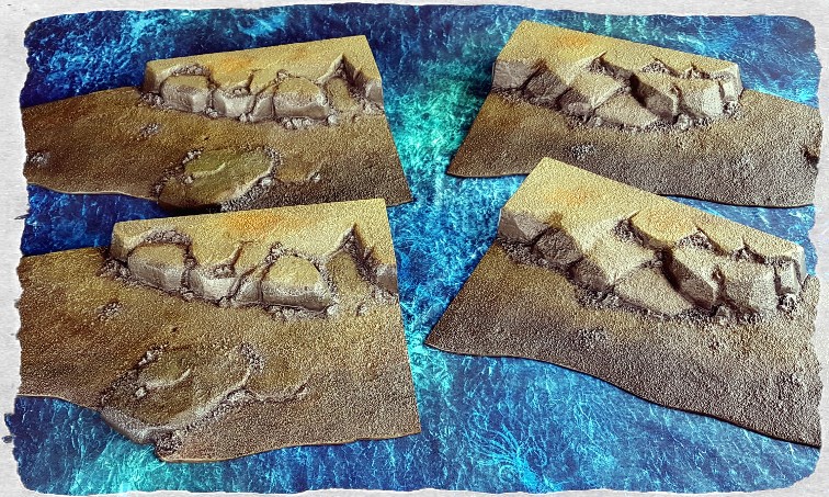Primarily though, the hills will be used to help with composition when I get around to taking some better photos of painted Man O’ War items in the future. The painted terrain from Dreadfleet provides plenty of up-to-eleven focal points, while the new coastal bits will work well as more neutral backdrops.