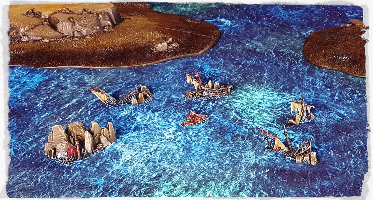 The issue that I have with that hill is that it’s close to impossible to balance figures on due to the gradient. Using it as negative space on a nautical table avoids that nicely. I’m perfectly happy to have visually pleasant pieces of terrain on a table that are inaccessible to miniatures, but if the terrain pieces look like they should be accessible but the figures keep falling off them, then that’s a different matter.